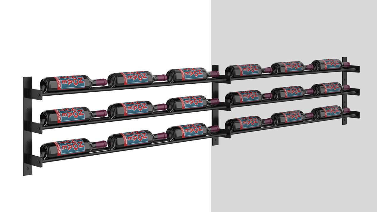 The CellarView II Series 15-K is a three–bottle high (38,1 cm) and 1 to 3 bottle deep wine rack that stands alone as a great accent piece to bars and other small wine wall projects. It can also be lined up with other CellarView II heights to create any custom size display to fit your space.