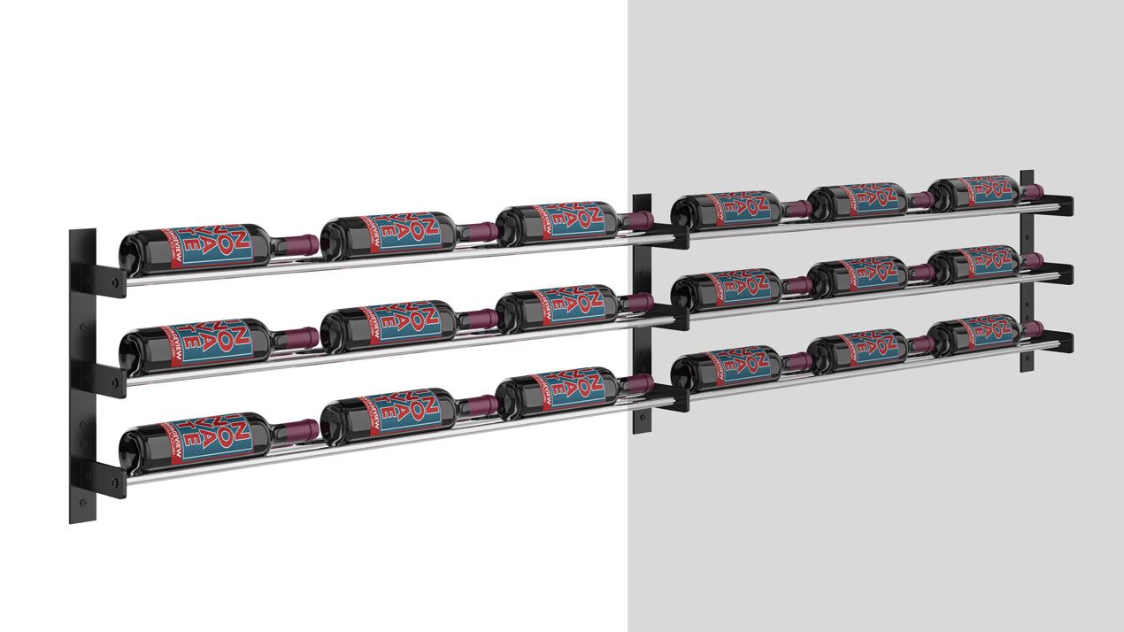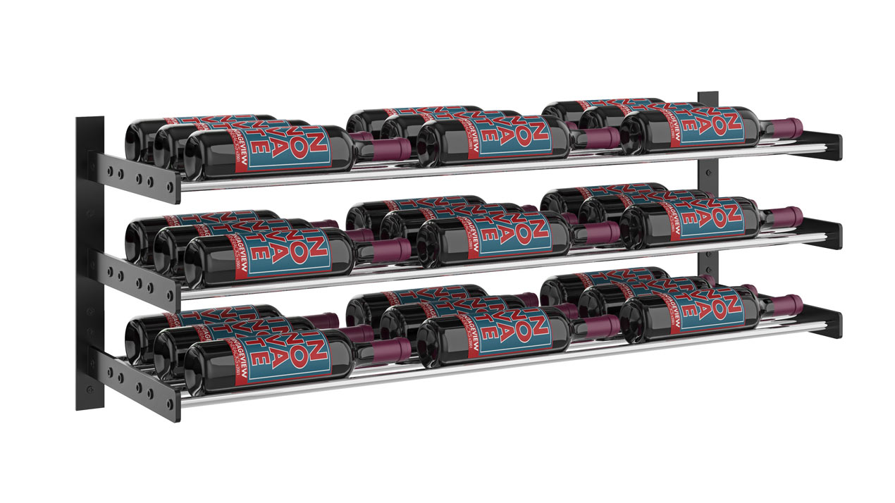 The CellarView II Series 15-P is a three–bottle high (38,1 cm) and 1 to 3 bottle deep wine rack that stands alone as a great accent piece to bars and other small wine wall projects. It can also be lined up with other CellarView II heights to create any custom size display to fit your space.