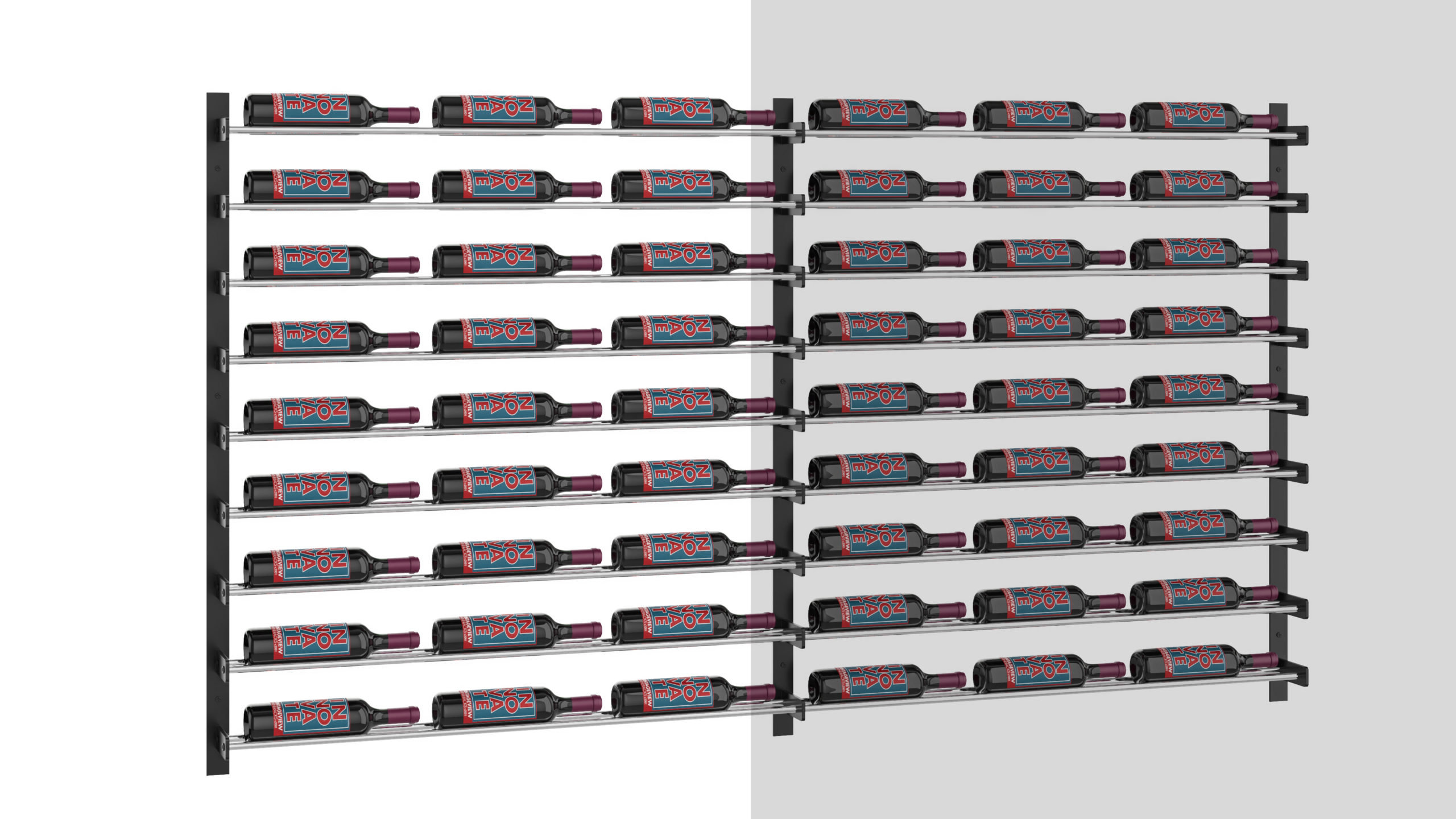 The CellarView II Series 45-P is a nine–bottle high (114,3 cm) and 1 to 3 bottle deep wine rack that stands alone as a great accent piece to bars and other wine wall projects. It can also be lined up with other CellarView II heights to create any custom size display to fit your space.